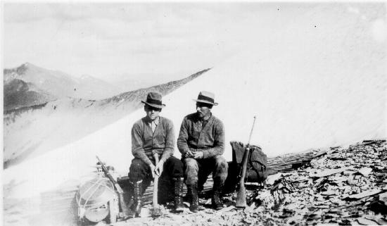 Two unidentified men on a mountain. One photograph : b&w ; 2.75 x 4.25 inches. Original. From collection Wp-99-144.