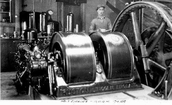 Cariboo Gold Quartz Mine plant, operated by Alf Tregillus between the years 1932-33. "Alf Tregillus as Diesel Plant Operator" written on the back. Written on the font "No.1 Diesel Engine C.G.Q.M. 94 HP". One photograph : b&w ; 5.5 x 3.25 inches. Collection of photographs donated by Dave Johnson (wp-200-307) and date between 1930 and 1941.