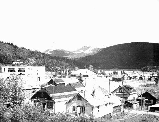 The town of Wells, showing both school buildings. The three story, flat roofed building to the left is the first school, beside which a new school classroom was erected to the far right. 1 photograph : b&w. Collection consists of photographs (wp603-611, 744, 896) donated by R.A.Luckow, child of A. (Fred) Luckow. Photographs were taken by Fred Luckow, who was "well known in Wells for a long time and would be remembered well by many people".