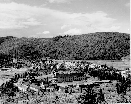 Wells Townsite and the Cariboo Gold Quartz Mine, from 1200 level. 1 photograph : b&w. Collection consists of photographs (wp603-611, 744, 896) donated by R.A.Luckow, child of A. (Fred) Luckow. Photographs were taken by Fred Luckow, who was "well known in Wells for a long time and would be remembered well by many people".