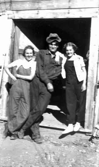 Fred Peet with Alice and Myrtle Drinkwater at the Snowshoe Power House, 1939. One photograph : b&w. Collection consists of photographs donated by Fred Peet (wp01009-01017) taken circa 1940 in the Wells area, photographer unknown.
